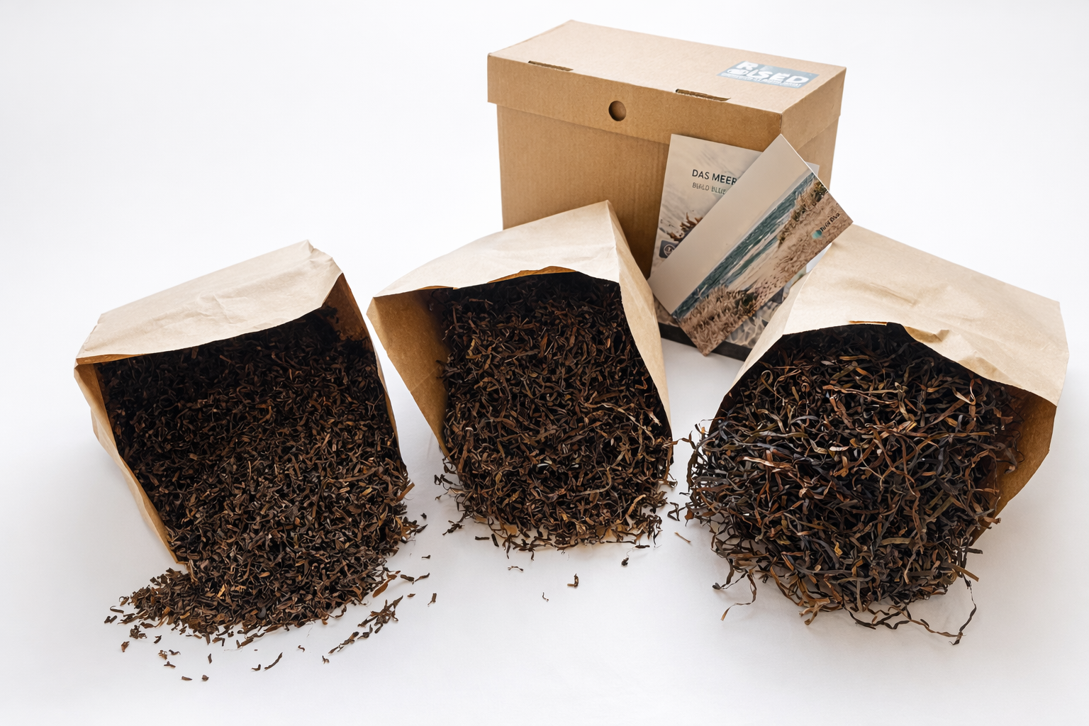 Ideal, um das passende Seegras-Material für Dein Projekt zu finden. Nachhaltig verpackt im wiederverwendeten Karton.
